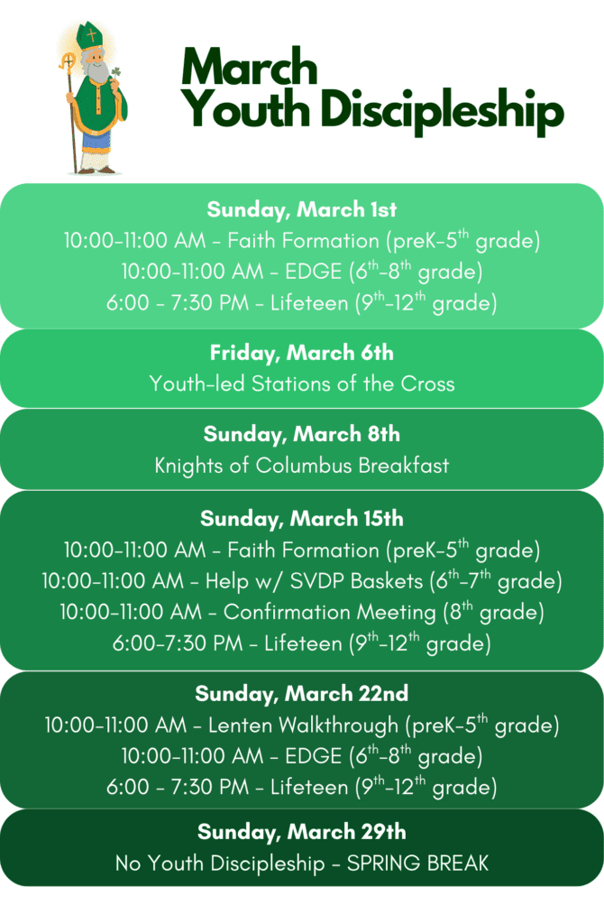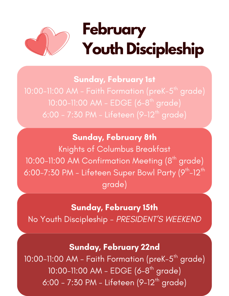 Please contact Abby Walraven at abigail.walraven.strita@gmail.com or call the parish office if you are interested in attending any of these retreats or would like more information.